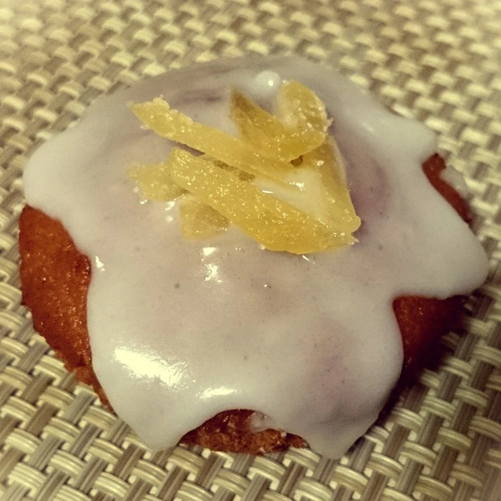 ШАГ 10 Остывшие маффины полить глазурью и украсить нарезанными цукатами имбиря. Дать застыть глазури примерно 30 минут.