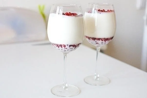 ШАГ 5 На дно формы для желе (будет красиво, если вы используете прозрачную форму, например бокалы) выложите слой гранатовых зерен, залейте желейной смесью. Поставьте застывать в холодильник на 2 часа. Затем досыпьте еще гранаты, чтобы они распределились по желе. Снова поставьте в холодильник (лучше на всю ночь).