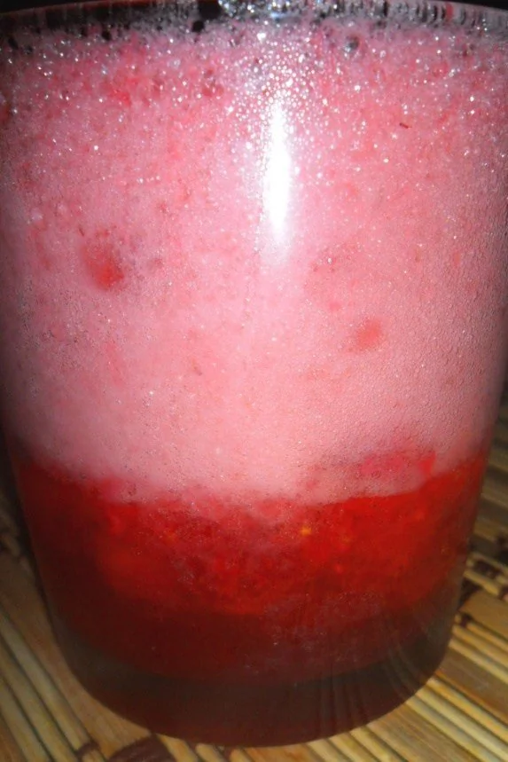 ШАГ 3 Клубнику взбить в блендере или растолочь вилкой.