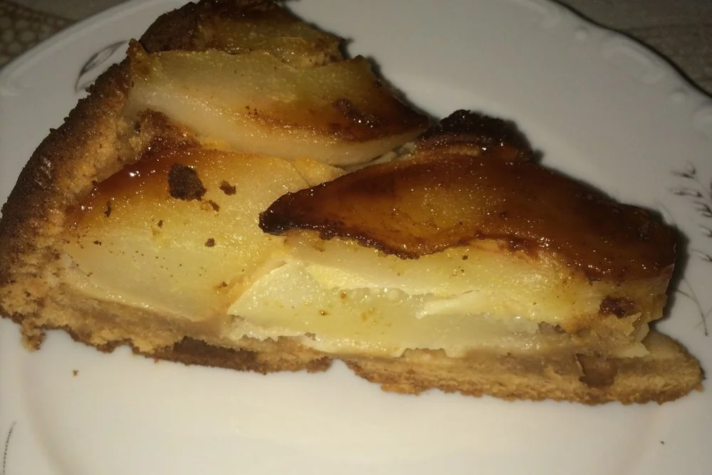 ШАГ 3 Оставшийся мед взбиваем с яйцами, добавляем муку и постепенно вливаем масло. Яйца добавляем в мед постепенно, хорошо вымешивая, а потом уже всыпаем муку и масло. Тесто очень хорошо перемешиваем, чтобы не было комков. Аккуратно выкладываем груши в форму. Заливаем их тестом. Разогреваем духовку до 200 градусов. Ставим в духовку форму и сразу уменьшаем огонь до 180, примерно на 1 час, до готовности. Даем немного остыть и сразу же вытаскиваем из формы, чтобы карамель не успела затвердеть.Накрываем форму сверху тарелкой и резко переворачиваем.