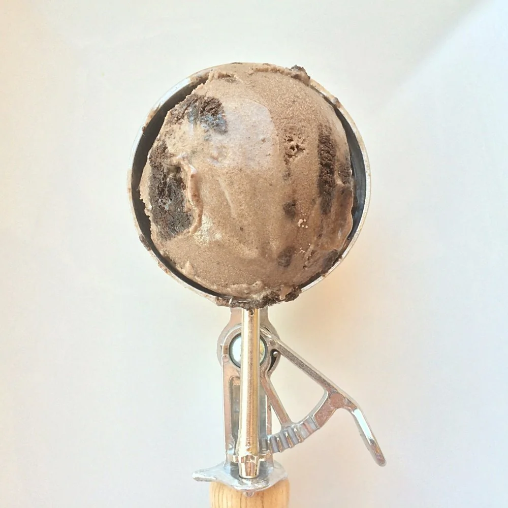 ШАГ 3 Перелейте охлажденный йогурт в мороженицу и заморозьте в соответствии с инструкцией. Забросьте оставшееся, измельченное в достаточно крупную крошку печенье (44 грамма или 4 штуки) в последнюю минуту заморозки. Переложите в контейнер для мороженого и храните в морозилке.