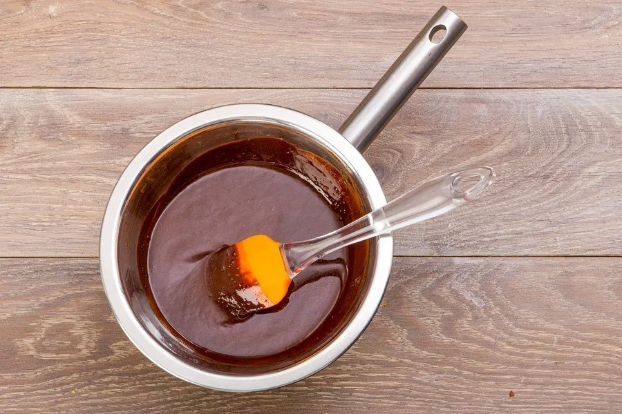 ШАГ 6 Шоколадный корж разрежьте вдоль на две половины, одну смажьте кремом, накройте второй половиной; растопите оставшийся шоколад на водяной бане, добавьте мед, перемешайте; полейте торт глазурью и разровняйте широким ножом или лопаткой.