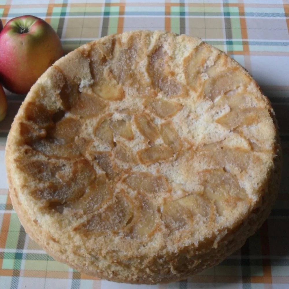 ШАГ 7 Залить яблоки тестом и слегка постучать по дну формы, чтобы тесто проникло сквозь яблоки.
