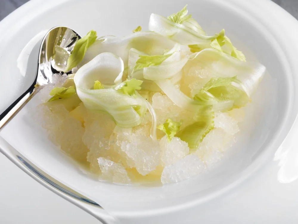 Лимонное парфе с гранитой из шампанского и сельдереем