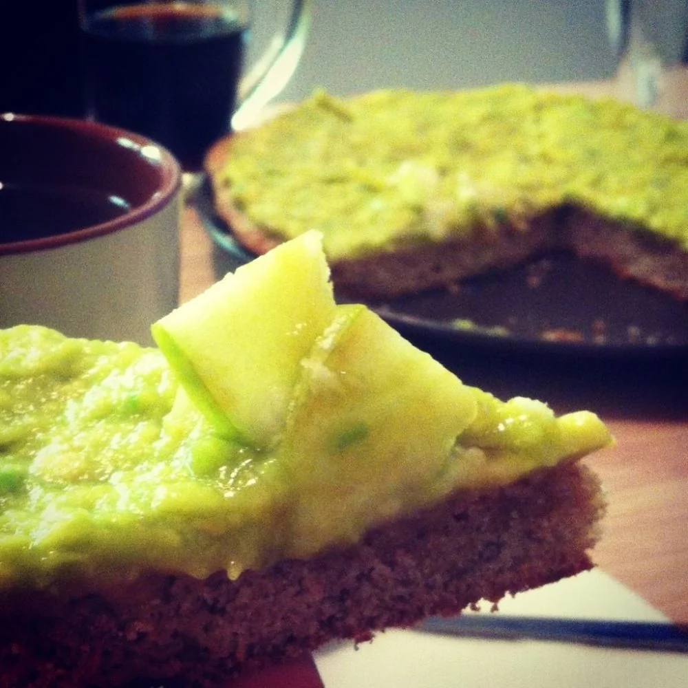 ШАГ 2 Ставим тесто в холодильник. А пока переходим к начинке. Чистим авокадо и разминаем его в пюре, добавляем сахарную пудру. Натираем яблоко на мелкой терке, но пару долек оставим для украшения. Смешиваем пюре и сахарную пудру и также кладем в холодильник.