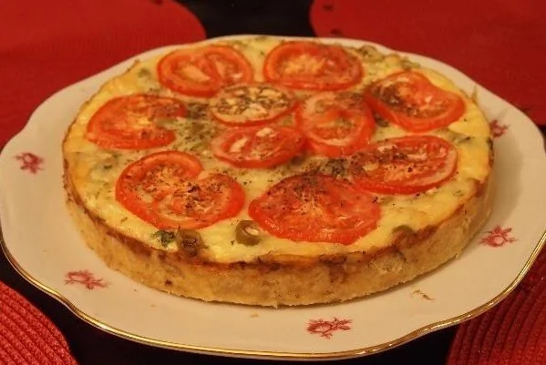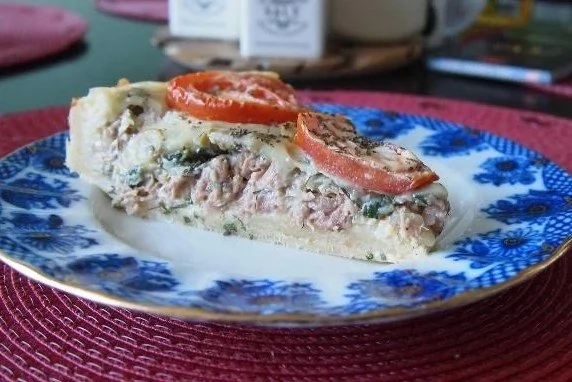 Пирог с тунцом, луком и помидорами