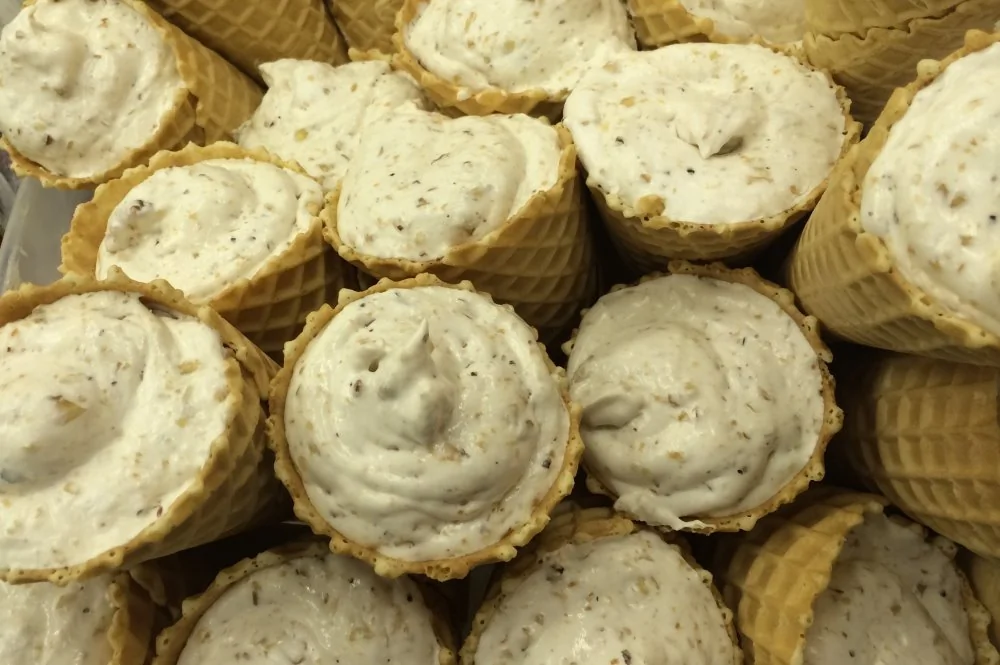 ШАГ 7 Можно расфасовать мороженое по вафельным конусам, а можно оставить замораживаться в глубокой емкости и после катать шарики специальной ложкой.