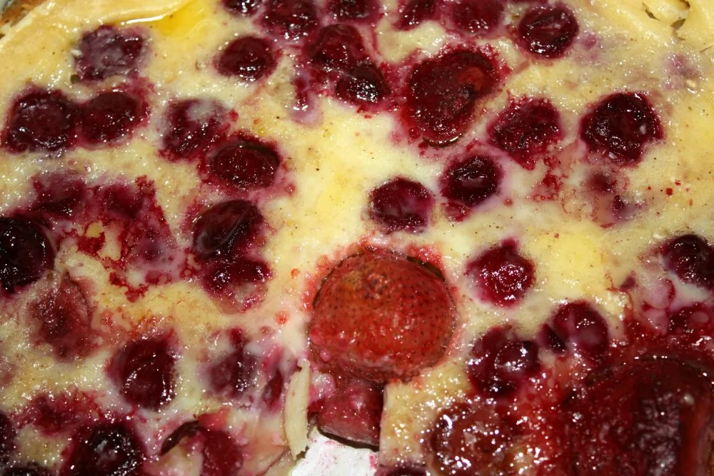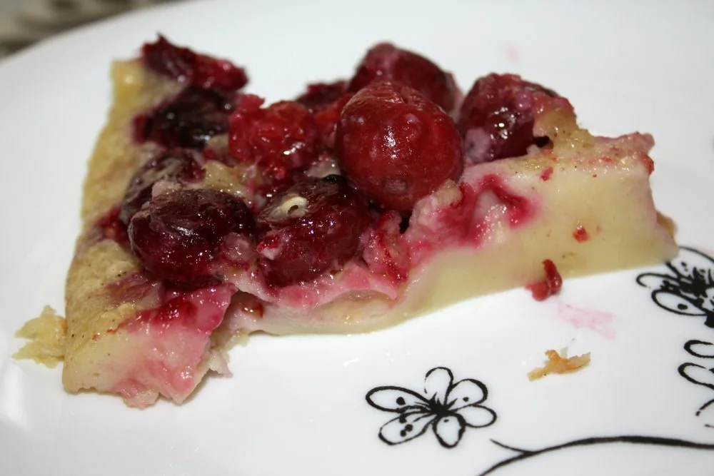 ШАГ 4 Достаньте форму и уложите на дно слой вишни, а сверху вылейте оставшееся тесто и опять поставьте в духовку на 15–30 минут (время выпекания зависит от размера выбранной формы). Пирог должен хорошо подняться, стать плотным и подрумяниться.
