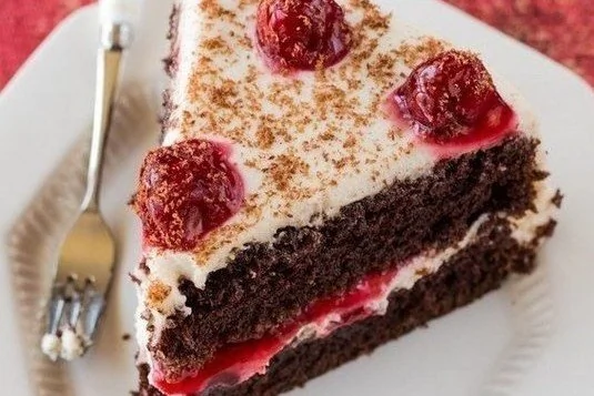 ШАГ 9 Украсьте торт вишнями и тертым шоколадом.