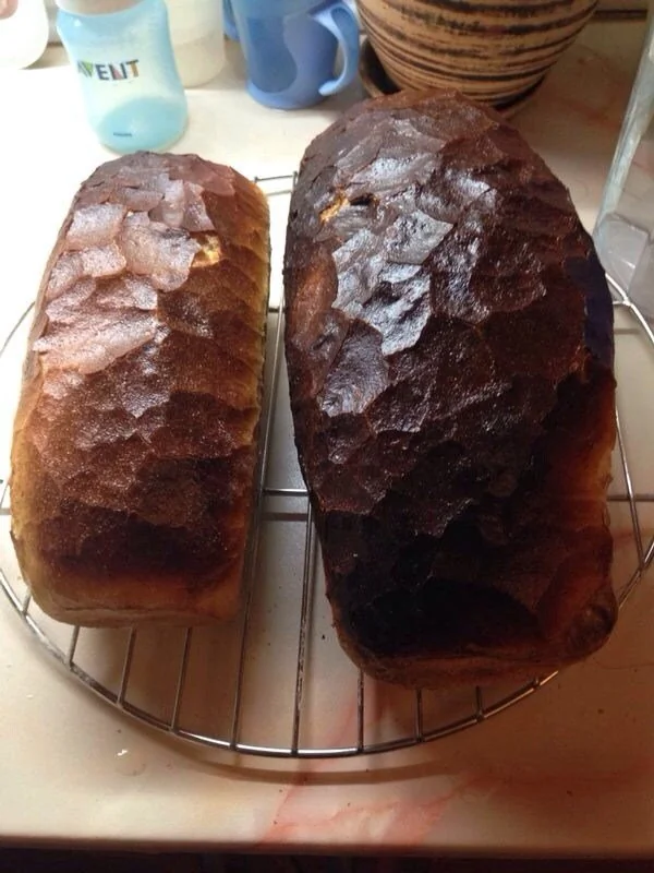 ШАГ 6 Разогреваем духовку до 200 градусов. Смазываем хлеб яйцом при помощи кисточки. Аккуратно ставим хлеб. Выпекаем 35–45 минут. Если верхушка начнет подгорать, а готовиться хлебу еще минут 15–20 уменьшаем температура до 180 градусов. Проверить готовность можно, постучав по дну (основанию) хлеба,— если звук исходит как бы из пустоты — хлеб готов, если нет — готовим еще.