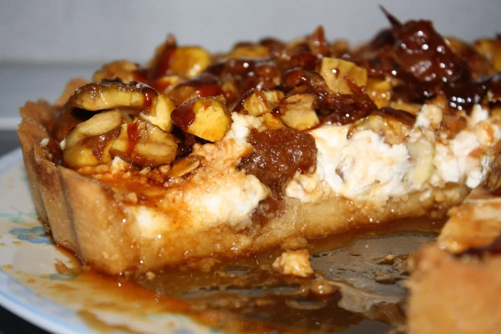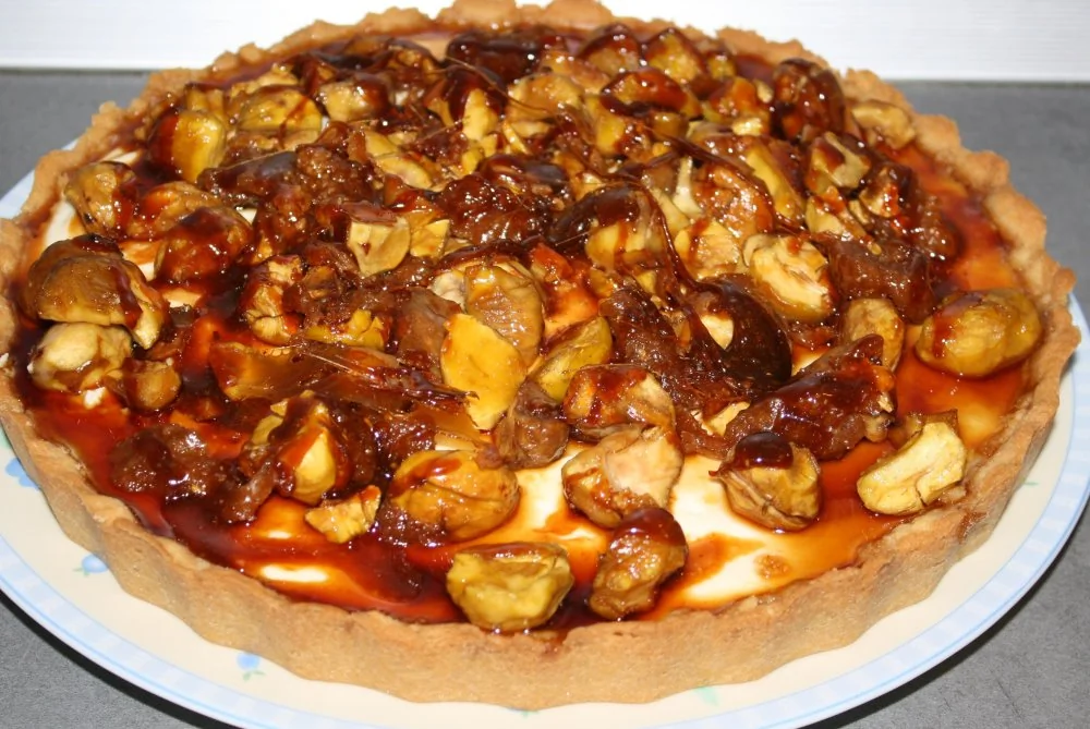 ШАГ 6 После всего вышеизложенного, стоит вспомнить о наших каштанчиках, выложить из сверху на творог и все залить карамелью!!! Читаем еще один пункт ниже.