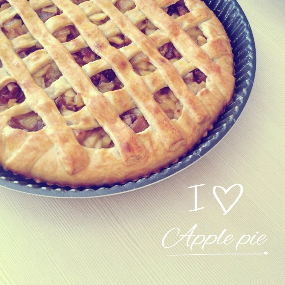ШАГ 3 Одну часть раскатать в пласт толщиной 1 см. Форму для выпекания смазать растительным маслом, распределить тесто по всему дну, выложить слой карамелизированых яблок. Оставшиеся тесто раскатать тонким слоем, нарезать на полоски и выложить в виде сеточки на пирог.