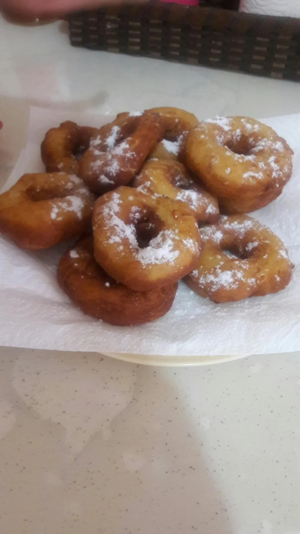 ШАГ 5 Готовые пончики выложить на салфетки, посыпать сахарной пудрой.