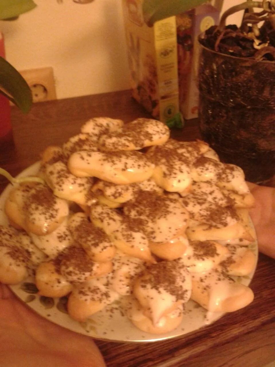 ШАГ 6 Испеченные и остывшие «пальчики» обмакнуть в крем и выложить горкой.