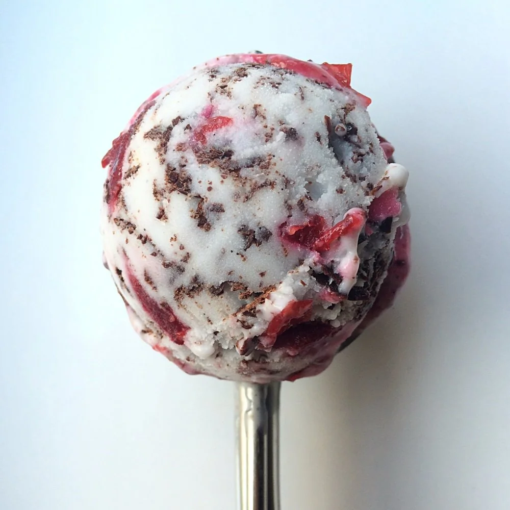 Кокосовое мороженое с вишней и темным шоколадом