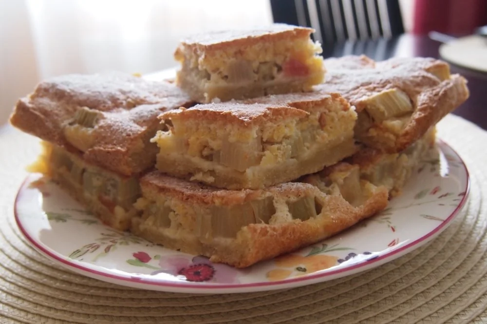 Пирог с рабарбаром (ревенем) и бисквитом