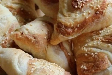 ШАГ 6 К желтку добавить ложку воды, взболтать. Смазать заготовки. Сверху по желанию немного посыпать кунжутом. Поставить в разогретую до 180 градусов духовку. Выпекать 40–50 минут до легкой золотистой поверхности.