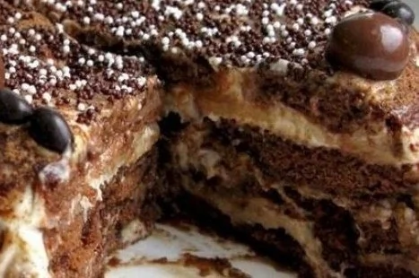 ШАГ 1 Маргарин растопить, растереть с яйцом и сахаром, добавить сметану. Муку и какао смешать (один корж выпекаем с какао, 2-й — без).