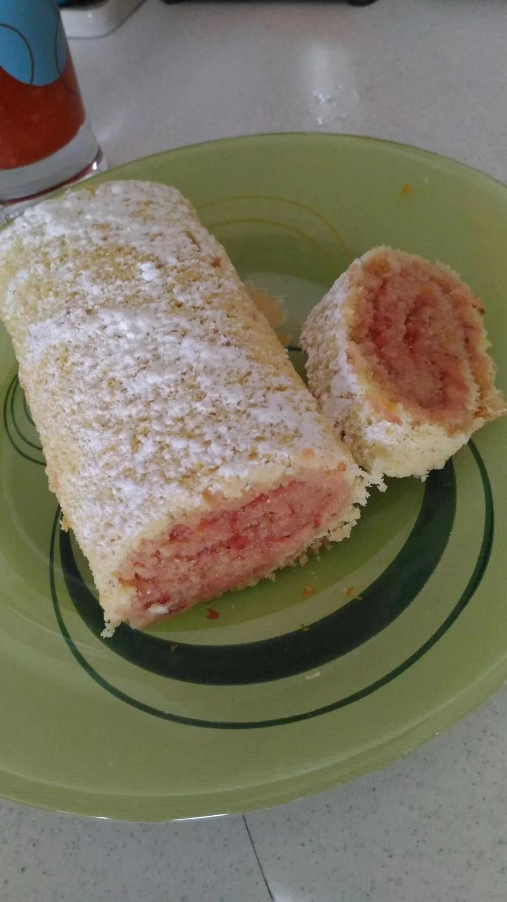 ШАГ 3 Пока выпекается рулет, готовим начинку. Для этого лимон моем, натираем на терке и смешиваем с 0,5 стаканом сахара. Когда рулет будет готов, вынимаем из духовки, выкладываем на полотенце, смазываем лимонной начинкой и сворачиваем в рулет. Готовый рулет выкладываем на блюдо, можно посыпать сахарной пудрой.