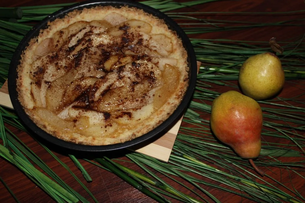 ШАГ 5 Груши красиво выложить поверх сформированной основы будущего пирога. Сверху по желанию и по вкусовым предпочтениям можно посыпать корицей и ванильным сахаром.
