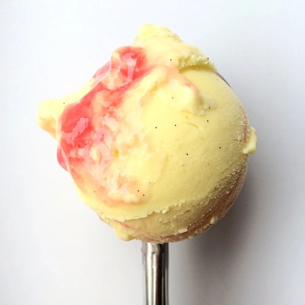 ШАГ 3 Для мороженого в другом сотейнике смешайте оставшееся молоко, сливки, 88 грамм сахара, зерна из стручка ванили, молотый шафран (чисто опционально, для цвета) и цедру одного лимона и на среднем огне до доведите до кипения. Процедите смесь и верните в сотейник, добавьте крахмальное молоко и варите при постоянном помешивании до загустения и консистенции молочного киселя. Снимите с огня, добавьте йогурт и лимонный сироп, смешайте до однородности, остудите до комнатной температуры, а потом в холодильнике на ночь.