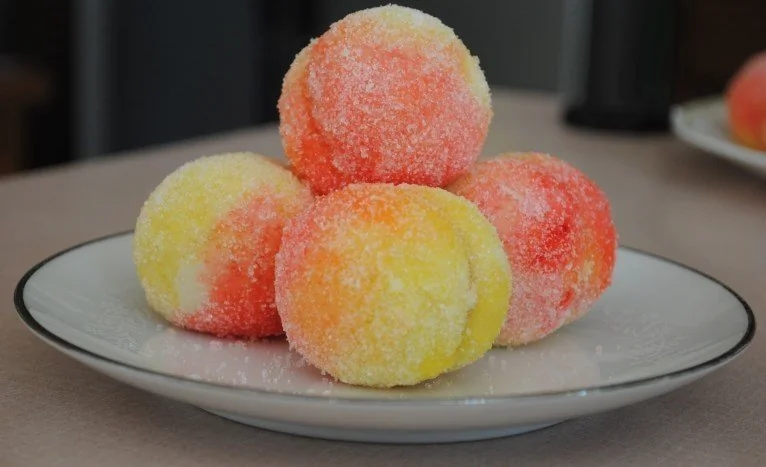 ШАГ 8 Выжать сок из натертой сырой моркови. Покрасить пирожные при помощи кисточки. Сырую свеклу натереть, поместить в марлевый тампон. Этим тампоном подрумянить пирожные. Обсыпать сахаром.