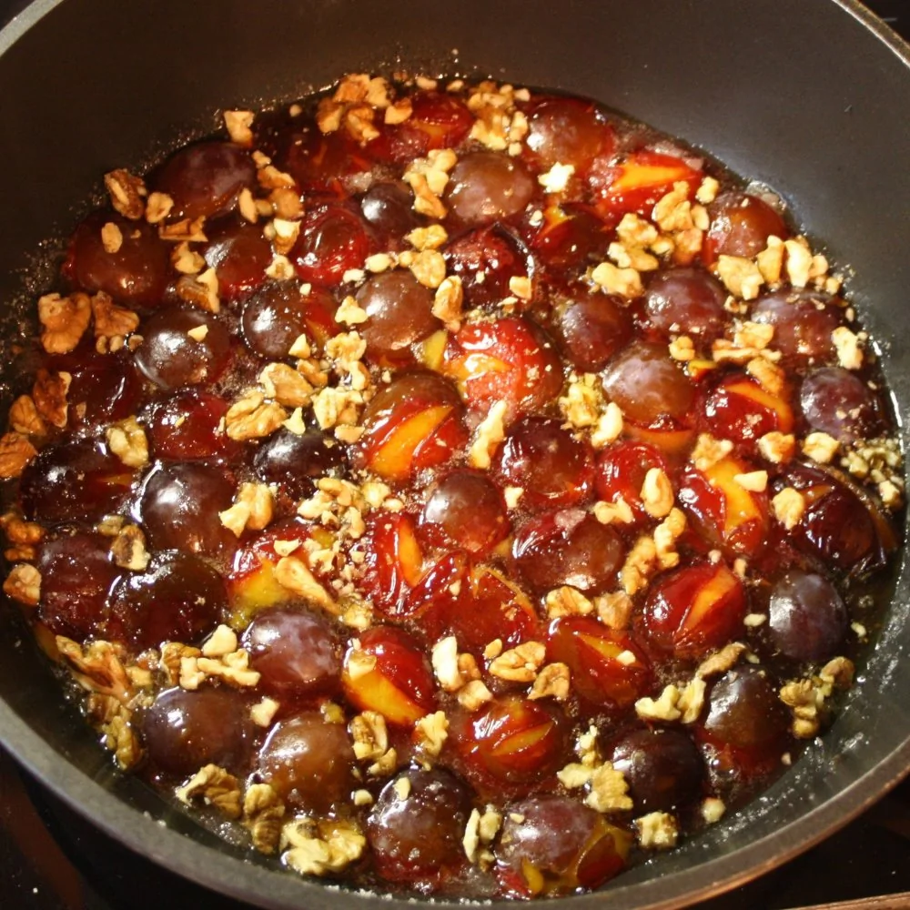 ШАГ 5 Выложить сливы разрезом вниз готовить на сильном огне 5 минут.