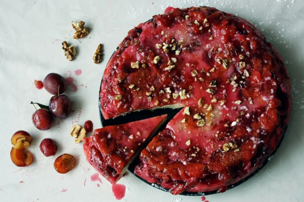 Ингредиенты для приготовления Пирог-перевертыш со сливами и грецкими орехами: