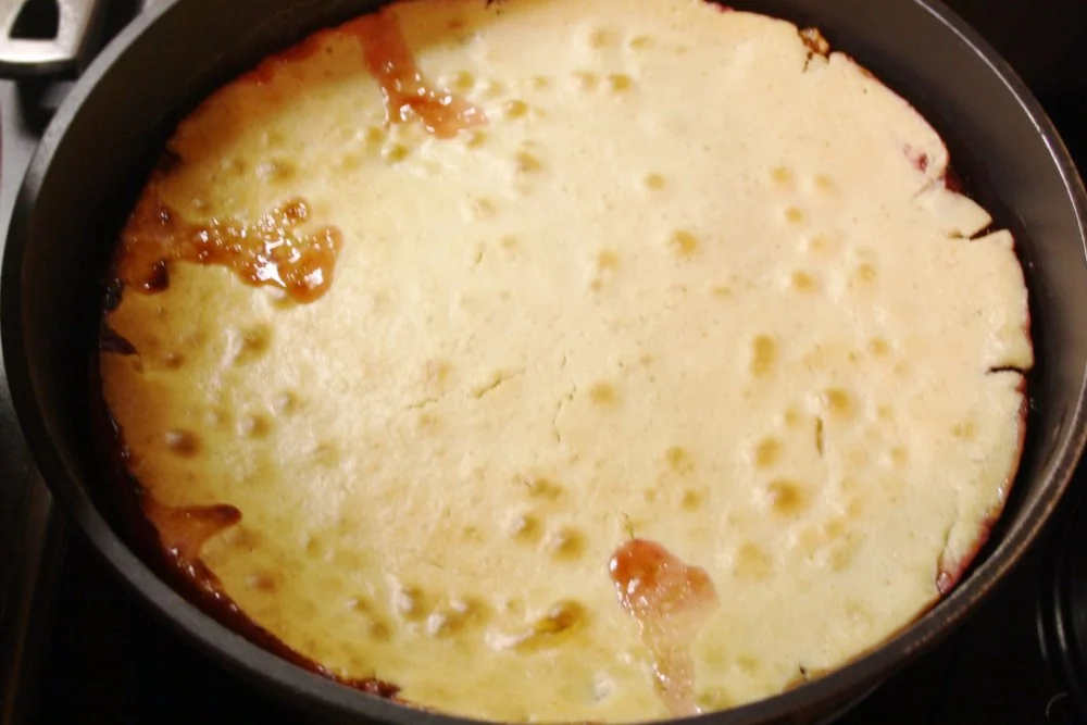 ШАГ 11 Залить тестом сливы и поставить в духовку на 25 минут при 180 градусах.