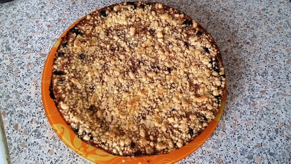ШАГ 8 Далее второй кусок теста можно либо сверху натереть на терку, либо нарезать полосками и выложить на поверхности пирога.