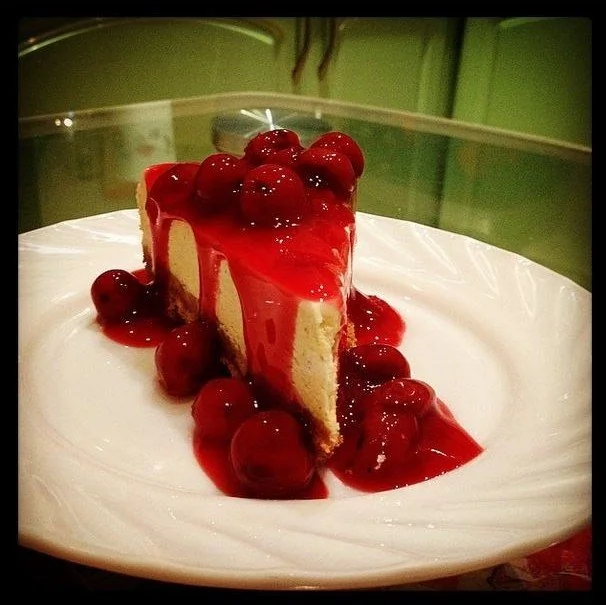 ШАГ 10 На утро можно наслаждаться вкуснейшим чизкейком, который можно посыпать ягодами (черничный, например) или нарезанными фруктами. Но больше всего мне нравится покупать десерт Dr. Oetker и поливать им. Он бывает вишневым (на картинке) и с лесными ягодами. Так же можно сделать вариации с желе сверху (например консервированные персики в желе). Все зависит от ваших желаний и фантазии.
