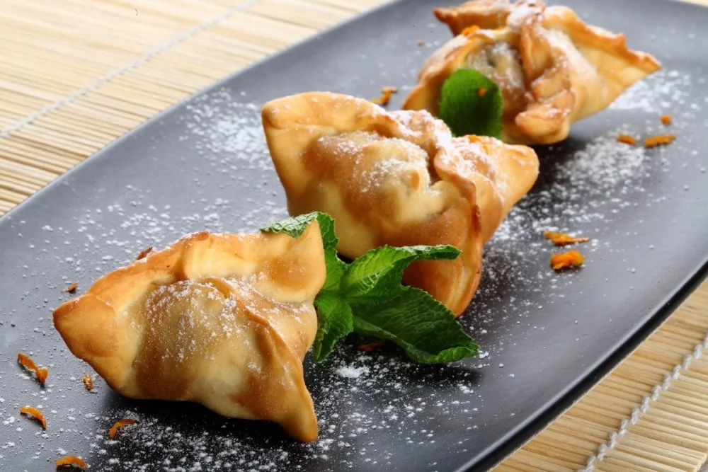 Хрустящие конвертики из теста с начинкой из банана и фиников