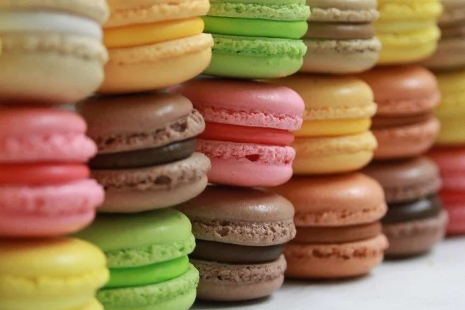 ШАГ 5 Смесь выложить в кондитерский мешочек с насадкой около 10 мм в диаметре, на противень, выстеленный пергаментной бумагой, выдавливать кружочки около 3 см в диаметре, они должны быть одинаковыми по размеру. Оставить противень на 1 час на столе для le croutage — образования корочки.