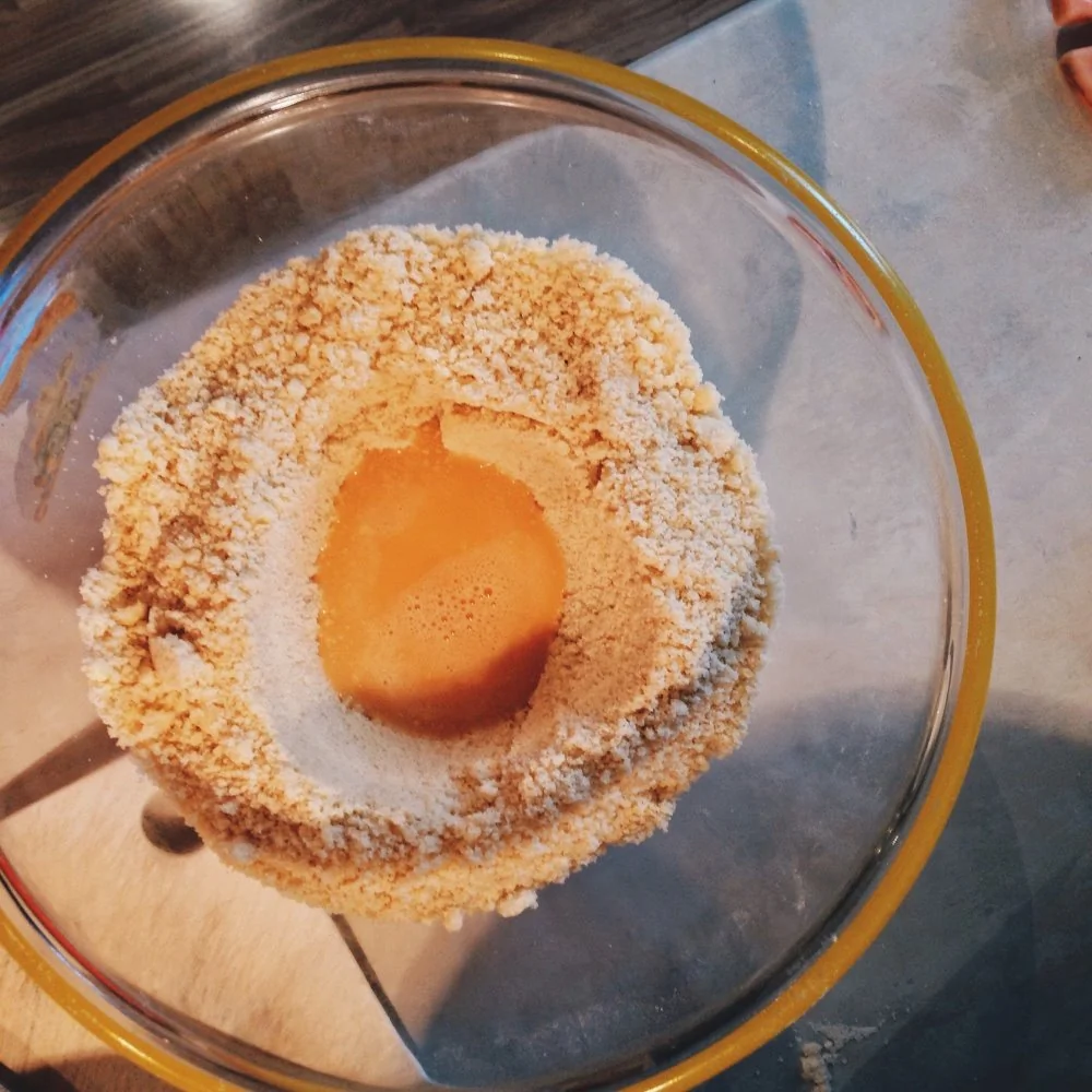 ШАГ 1 Для теста перетереть руками муку с холодным сливочным маслом до состояния крошки (сливочное масло предварительно нарезать кубиками). Вмешать дрожжи, щепотку соли и сделать в центре углубление. Взбить венчиком яйца, затем влить их в это углубление и вымесить тесто. Переложить тесто в присыпанную мукой миску, накрыть пленкой и оставить на 2 часа подняться.