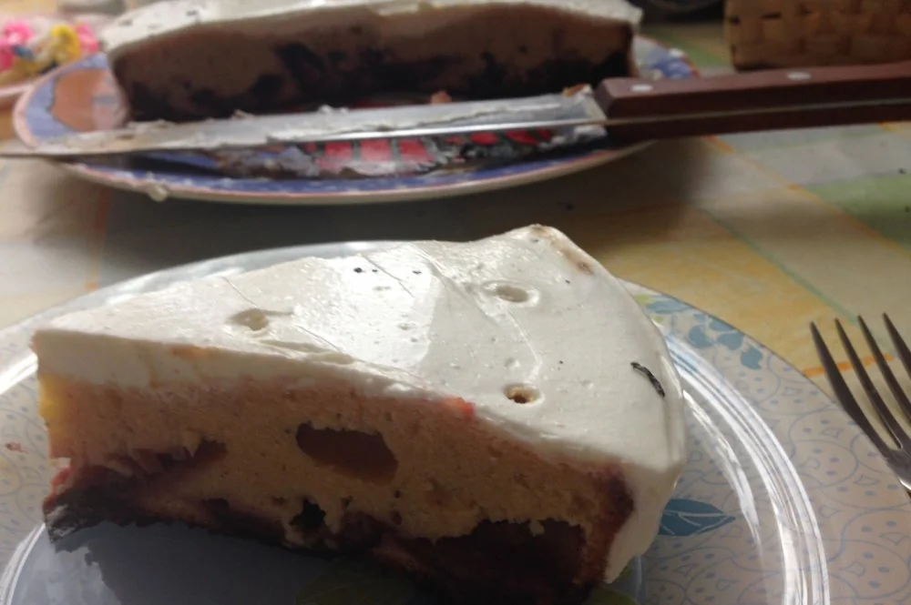 ШАГ 4 Готовый пирог остудить, сверху обмазать творожно-йогуртовой массой с сахаром.
