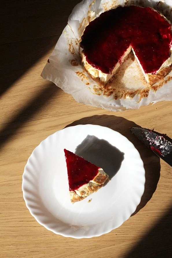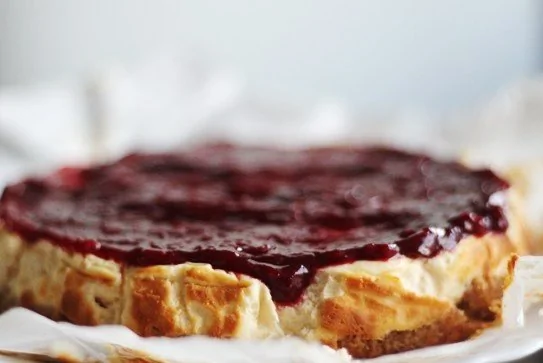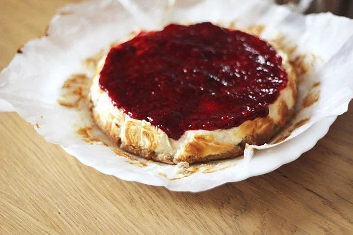 ШАГ 8 Вынуть чизкейк из холодильника, осторожно выложить из формы, распределить остывший соус сверху. Можно подавать сразу.