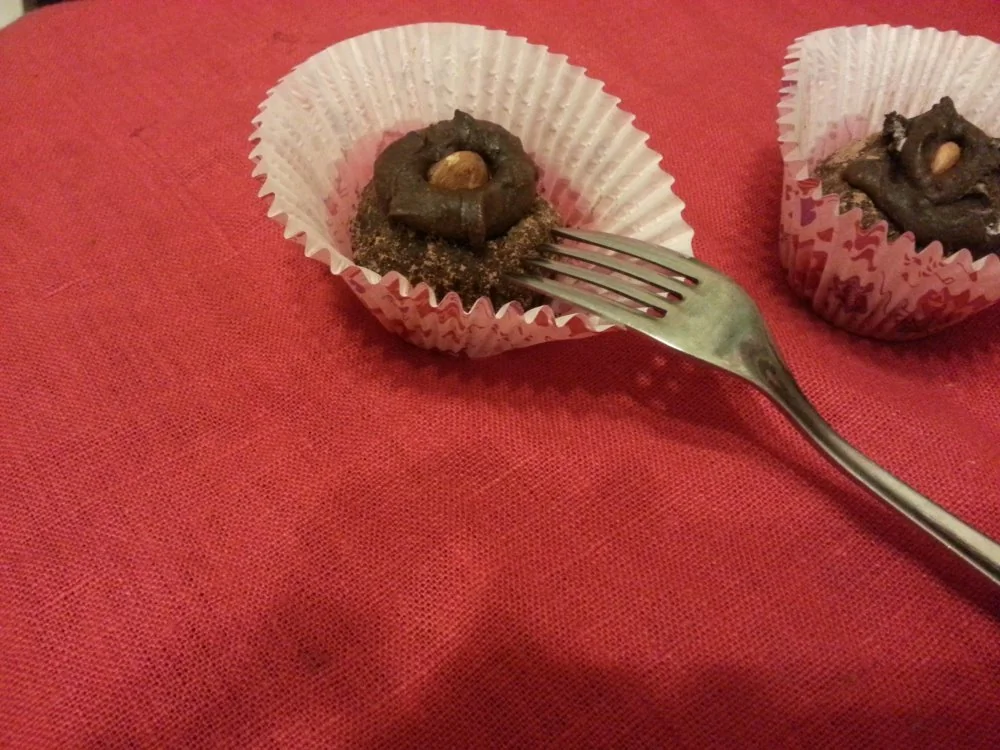 ШАГ 5 Берем небольшое количество массы, формируем шарик и кладем внутрь1–2 вишни. Обваливаем шарик в какао и выкладываем в бумажную формочку.