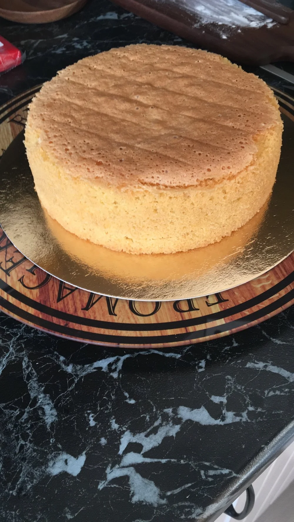 ШАГ 2 Остывший бисквит разрезать на 3 коржа.
