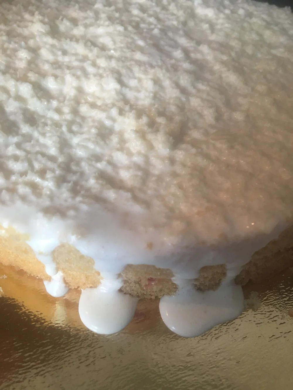 ШАГ 4 Желатин залить 2 столовыми ложками горячей воды и растворить. Сливки взбить с 2 столовыми ложками сахарной пудры, затем добавить 2 столовые ложки получившейся массы в желатин, перемешать, затем добавить остальные сливки и взбить.