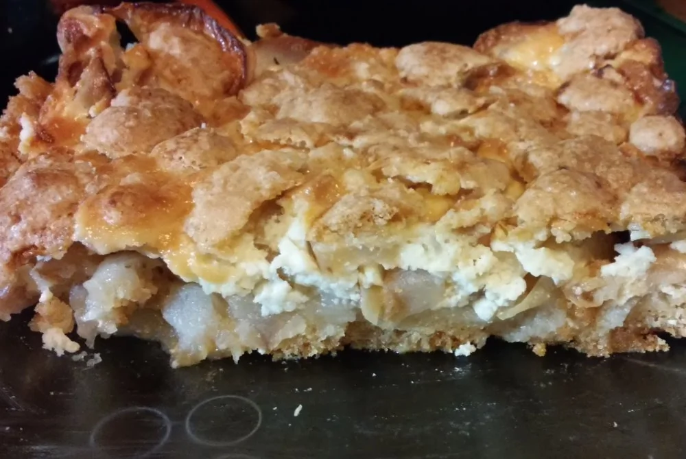 Яблочный пирог с творожной заливкой на песочном тесте