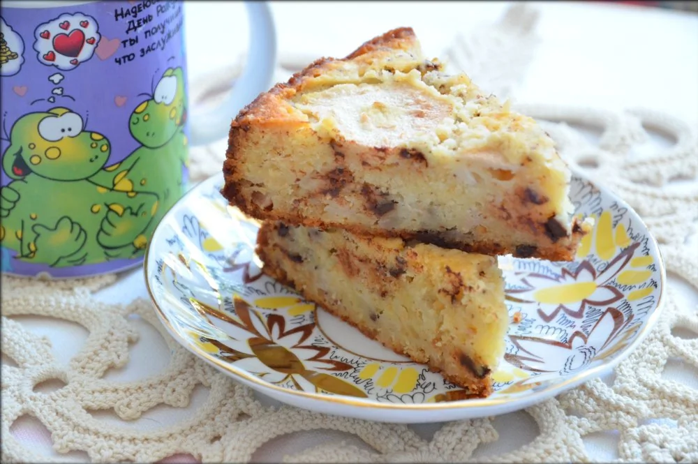 ШАГ 3 Очистить 2 груши от кожицы и сердцевины и мелко порезать. Добавить в тесто нарезанные груши и чёрный шоколад. Переложить тесто в заранее подготовленную форму.