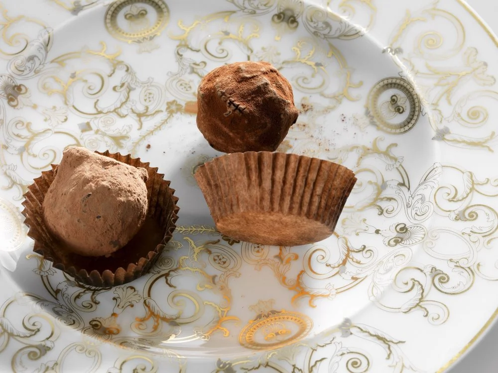 ШАГ 7 Трюфели обмакнуть в шоколад, дать подсохнуть и обмакнуть снова. Затем обвалять в какао-порошке и подавать.