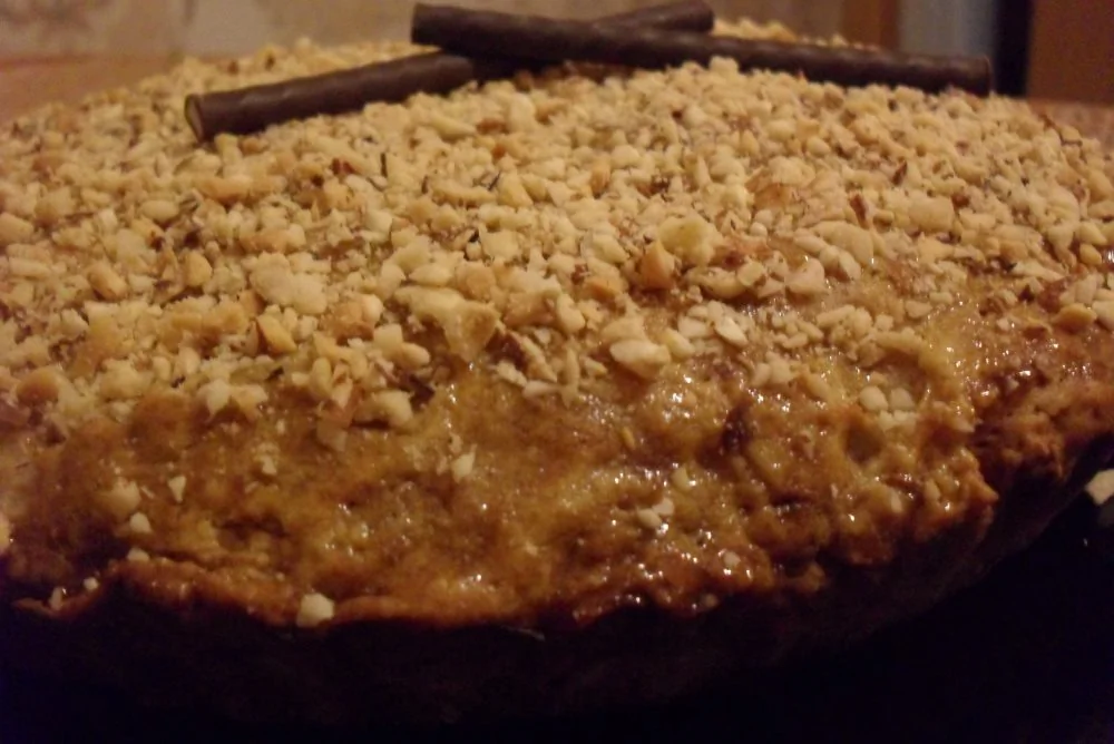 ШАГ 7 Верх пирога смазать медом и посыпать орехами.