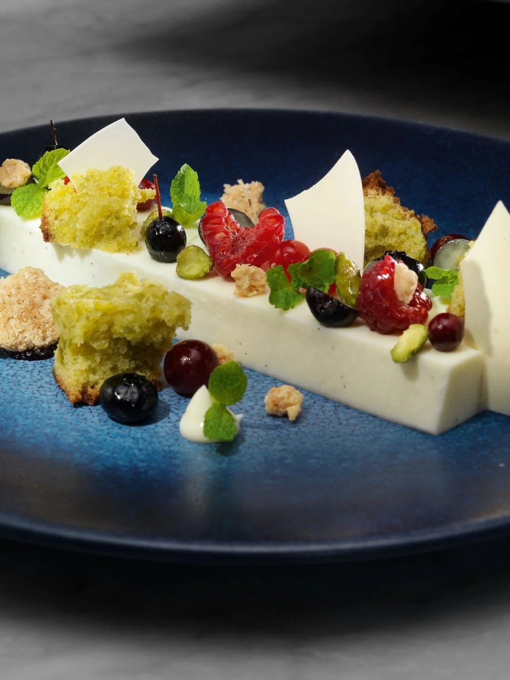 Йогуртовое желе с фисташковым кексом и ягодами
