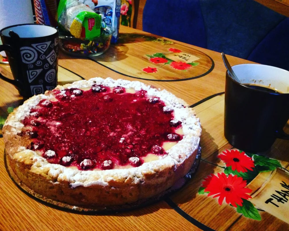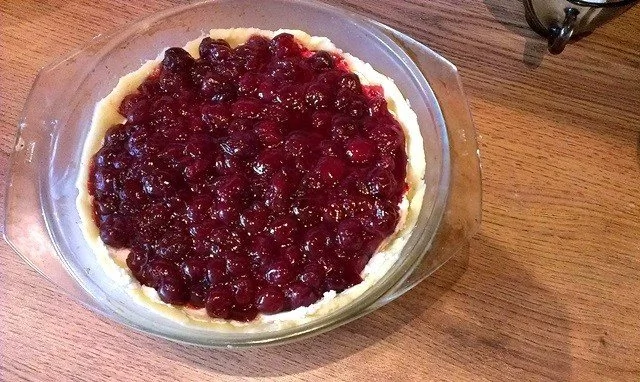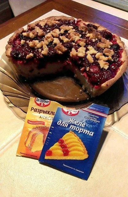 Песочный пирог с творогом и вишней