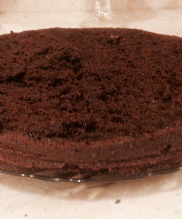 ШАГ 4 Вынимает корж, даем полностью охладиться, разрезает на два коржа, по желанию можно пропитать сиропом (я брала кофейный ликер, 0,5 ч.л. растворимого кофе, сахарный сироп: можно варьировать в зависимости от вкуса, всего 200–250 мл).