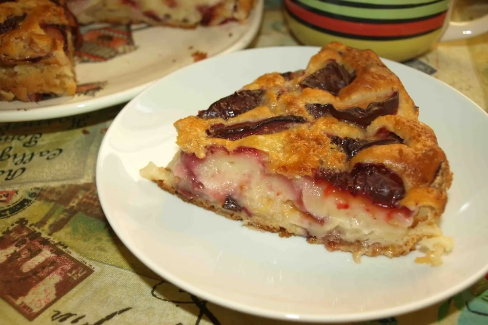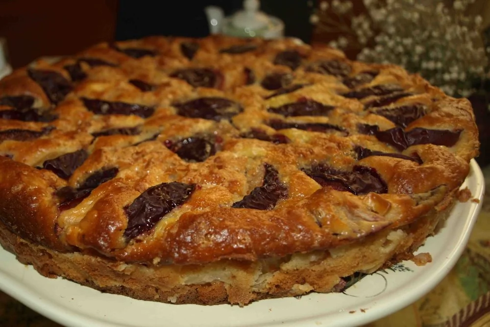 ШАГ 4 Тесто выкладываем в форму. Оставшиеся сливы (6 шт) режем дольками и выкладываем сверху на тесто. По желанию посыпаем сахаром и отправляем в заранее разогретую духовку до 180 градусов на 30–40 минут (зависит от вашей духовки).