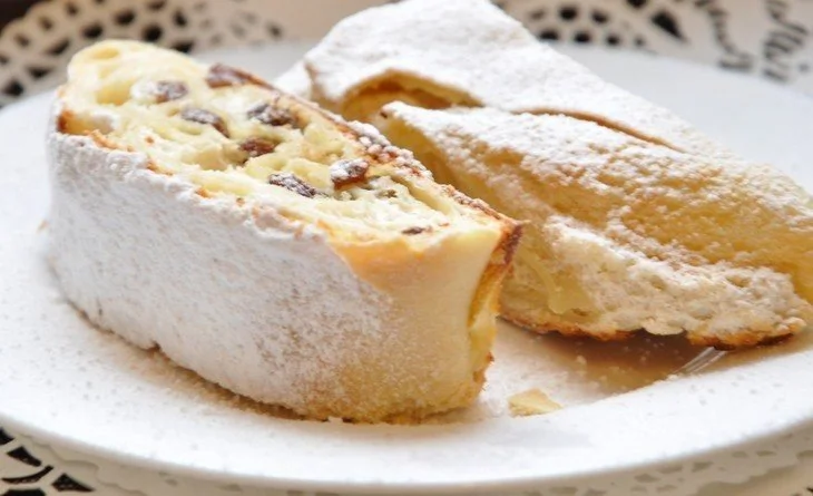 ШАГ 9 Готовый ретэш остудить, разрезать наискосок и посыпать сахарной пудрой.
