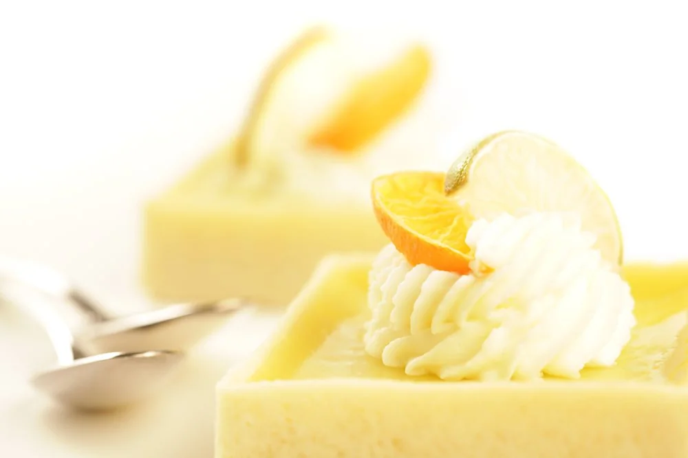 ШАГ 3 Взбить желтки с сахаром и лимонным соком, влить оставшийся сок. Поставить смесь на огонь и довести до слабого кипения, помешивая. Снять с огня и вмешать раствор сока и желатина. Размешать до однородности и остудить смесь, погрузив емкость в лед, постоянно помешивая (смесь должна приобрести консистенцию сырого яичного белка). Отдельно взбить сливки с цедрой в мягкую пену, а затем аккуратно порциями вмешать в смесь сока и желтков.