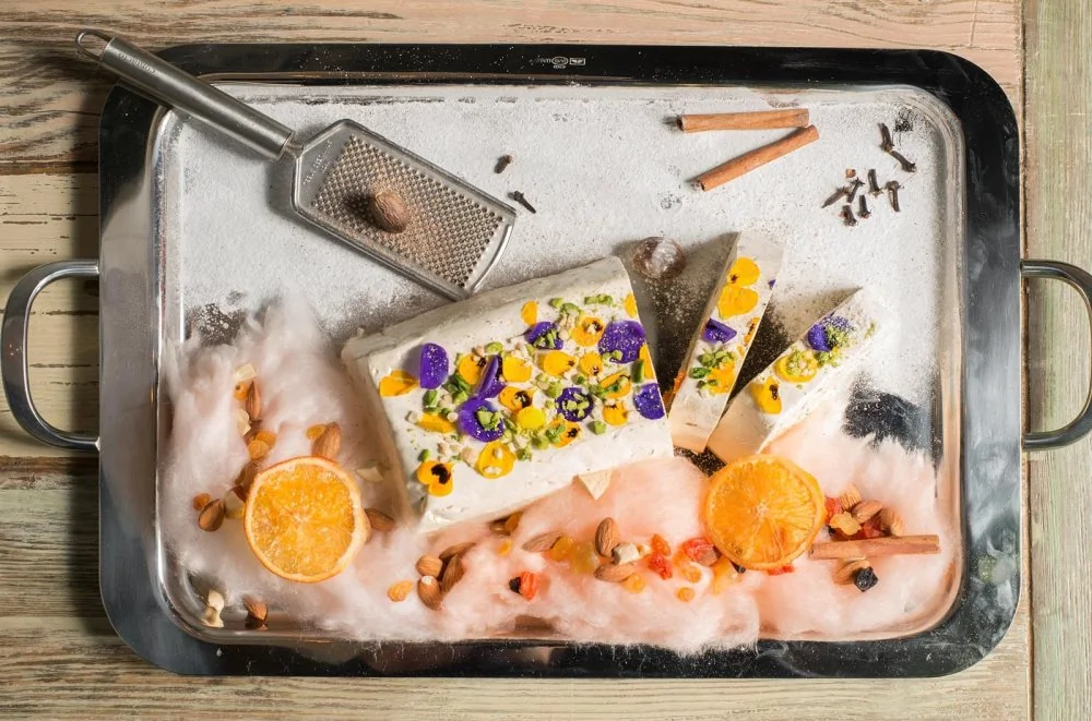 Яичный белок Сахар Вода Глюкоза порошок Мед Орехи Сухофрукты Мускатный орех Молотая гвоздика Молотая корица Перец черный молотый Выпечка и десерты Французская кухня